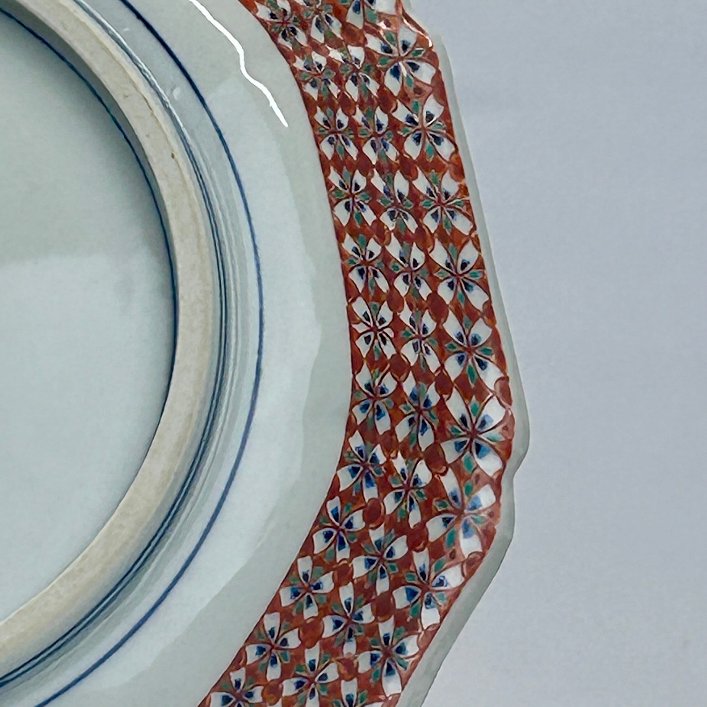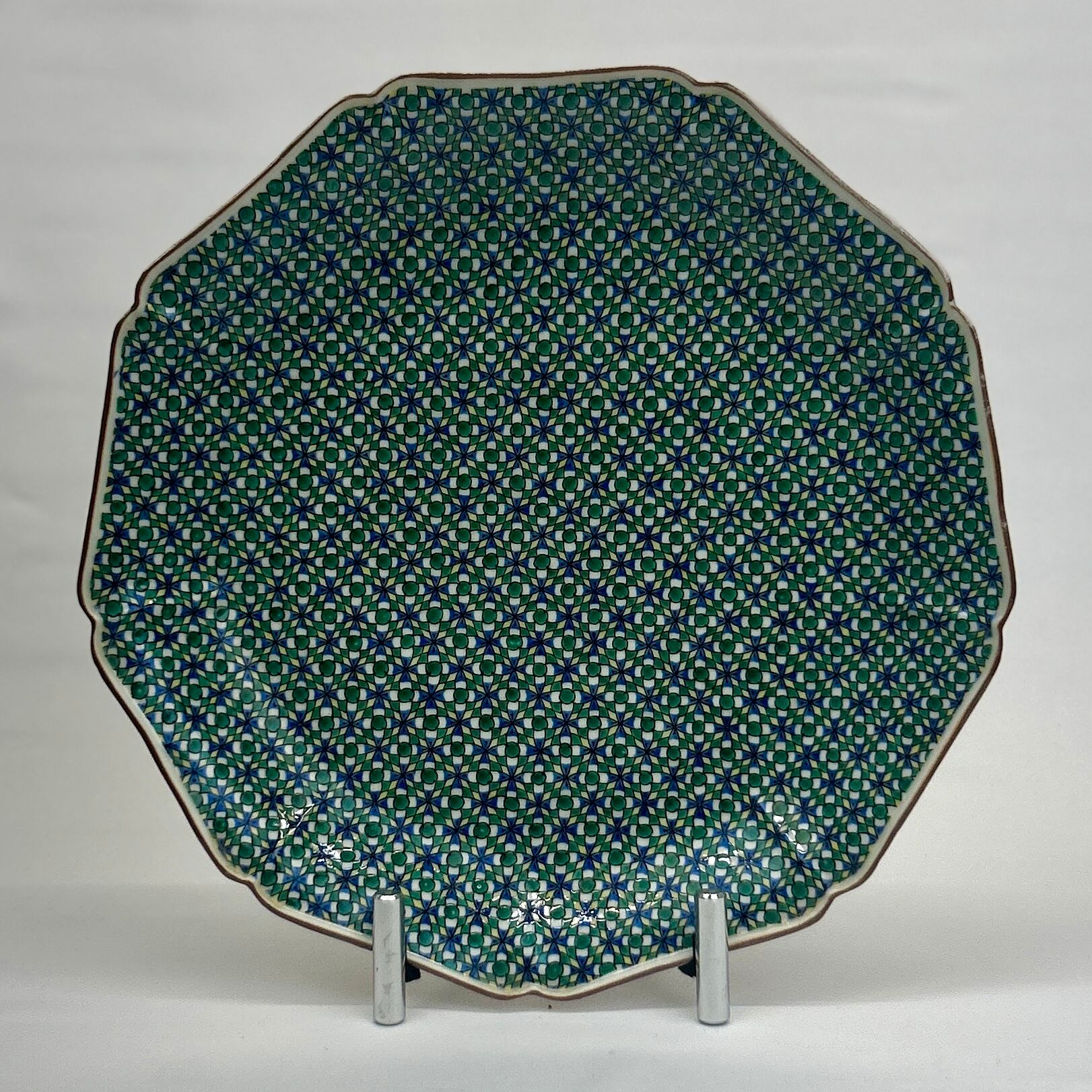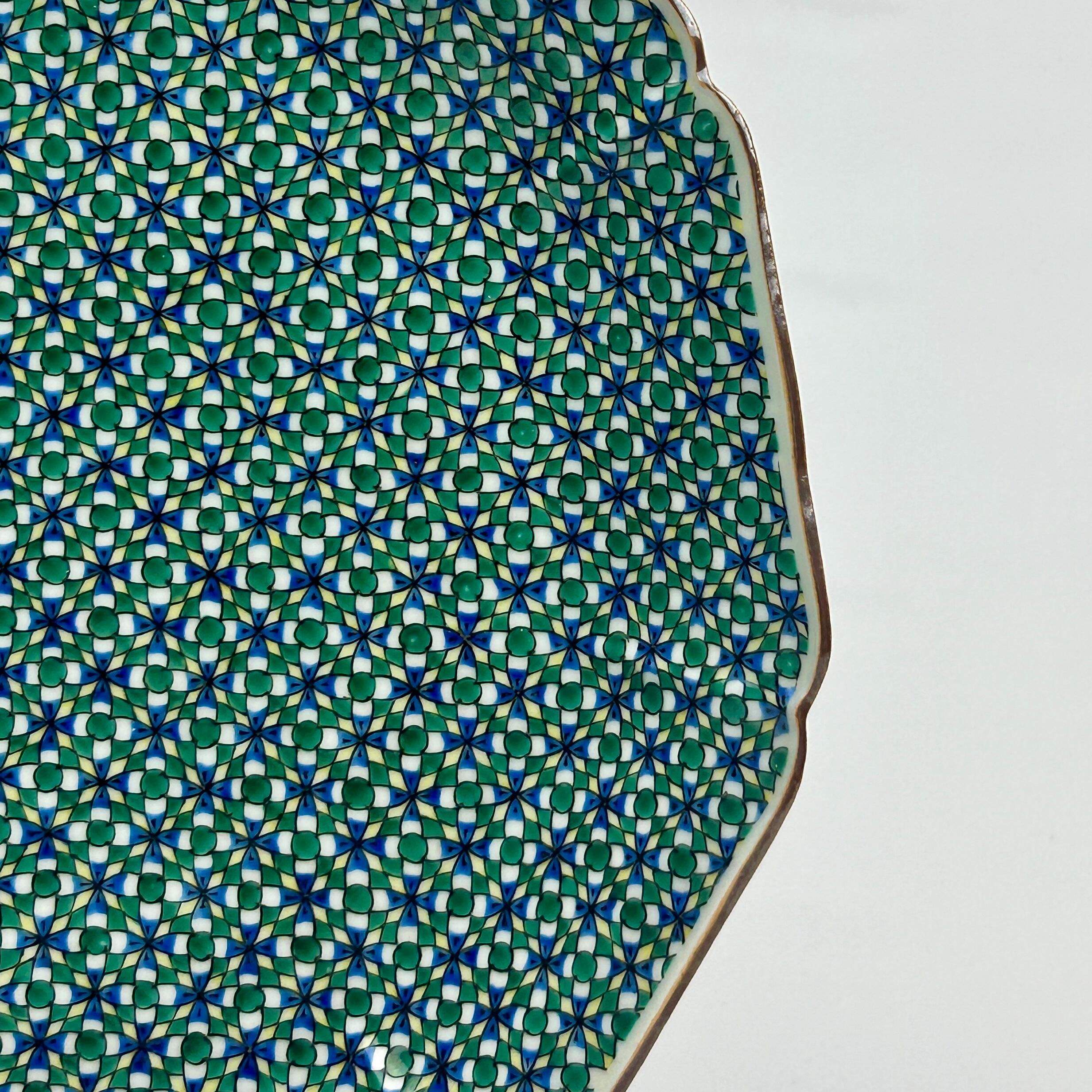 三代 上出喜山 色絵更紗文様 飾皿